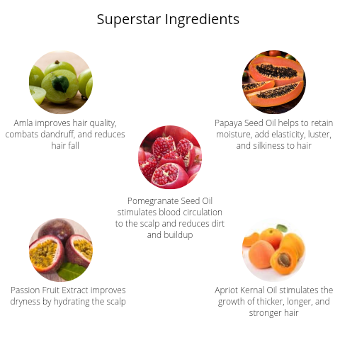 Key Ingredients: Black Castor Oil, Alma, Pomegranate Seed Oil, Passionfruit Oil, Fenugreek Oil.